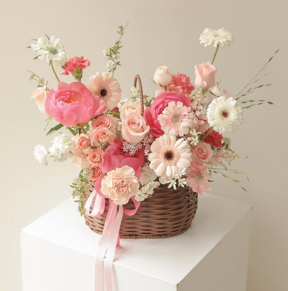 Với sự kết hợp tinh tế giữa hoa hồng hồng, hoa đồng tiền duyên dáng và mẫu đơn sang trọng, mẫu hoa này giúp bạn kể lại câu chuyện về sự trân trọng và niềm hạnh phúc đong đầy. Sắc hồng pastel nhẹ nhàng không quá rực rỡ nhưng lại cực kỳ sâu sắc, tượng trưng cho một tình cảm thuần khiết, sự quan tâm chu đáo và mong cầu một tuổi mới bình an, rực rỡ như những đóa hoa đang khoe sắc. 🎀
